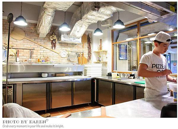 窗明几淨的開放式工作臺,客人可以直接看到PIZZA的製作過程。