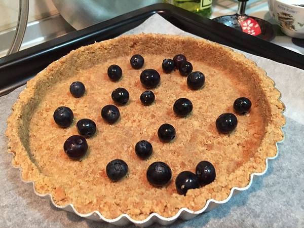 3.有看過在派皮上塗藍莓醬的作法,但因為我怕派底會太濕,所以捨棄不用。